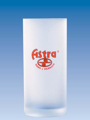 dekoracja prasowana - emblematy firmowe, reklamowe klienta, umieszczone na powierzchni szklanej, przeniesione wprost z formy